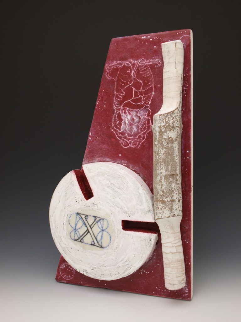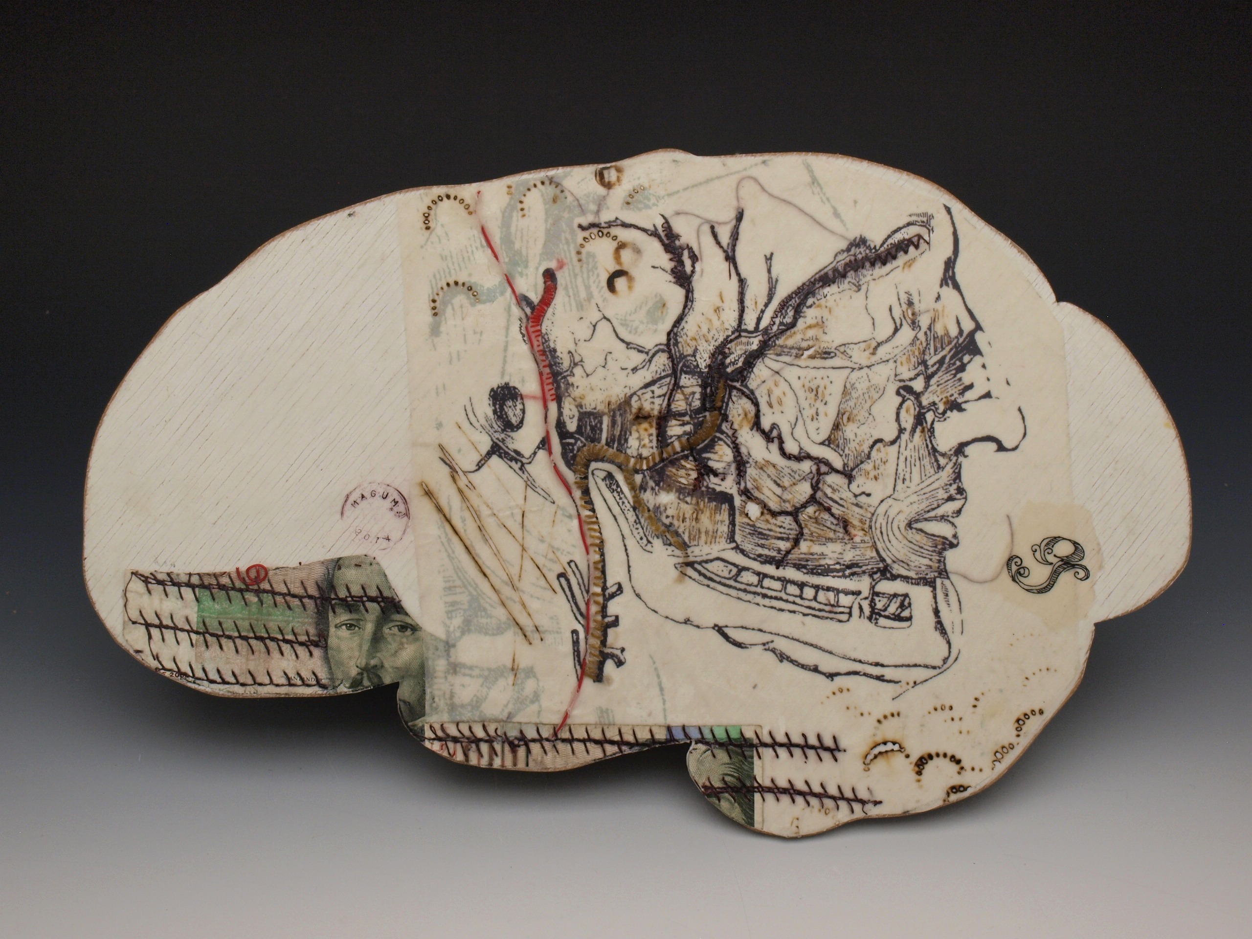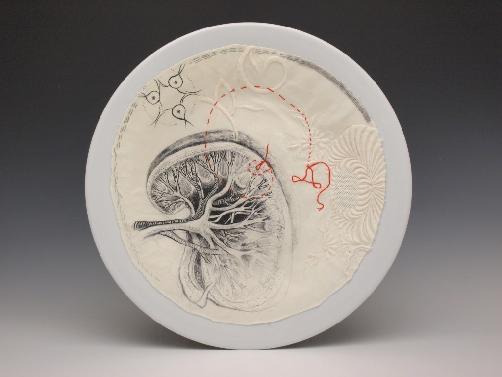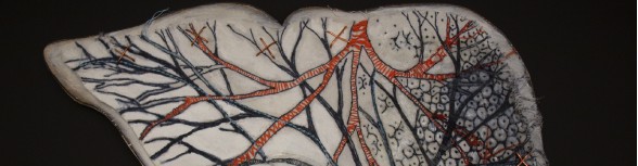 “Liver”, ink, embroidery and cotton on porcelain, 2017