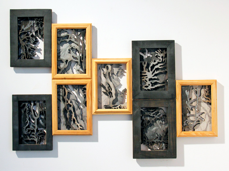 Lymphatic in Boxes, laser cut painted in wooden frames