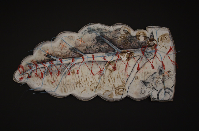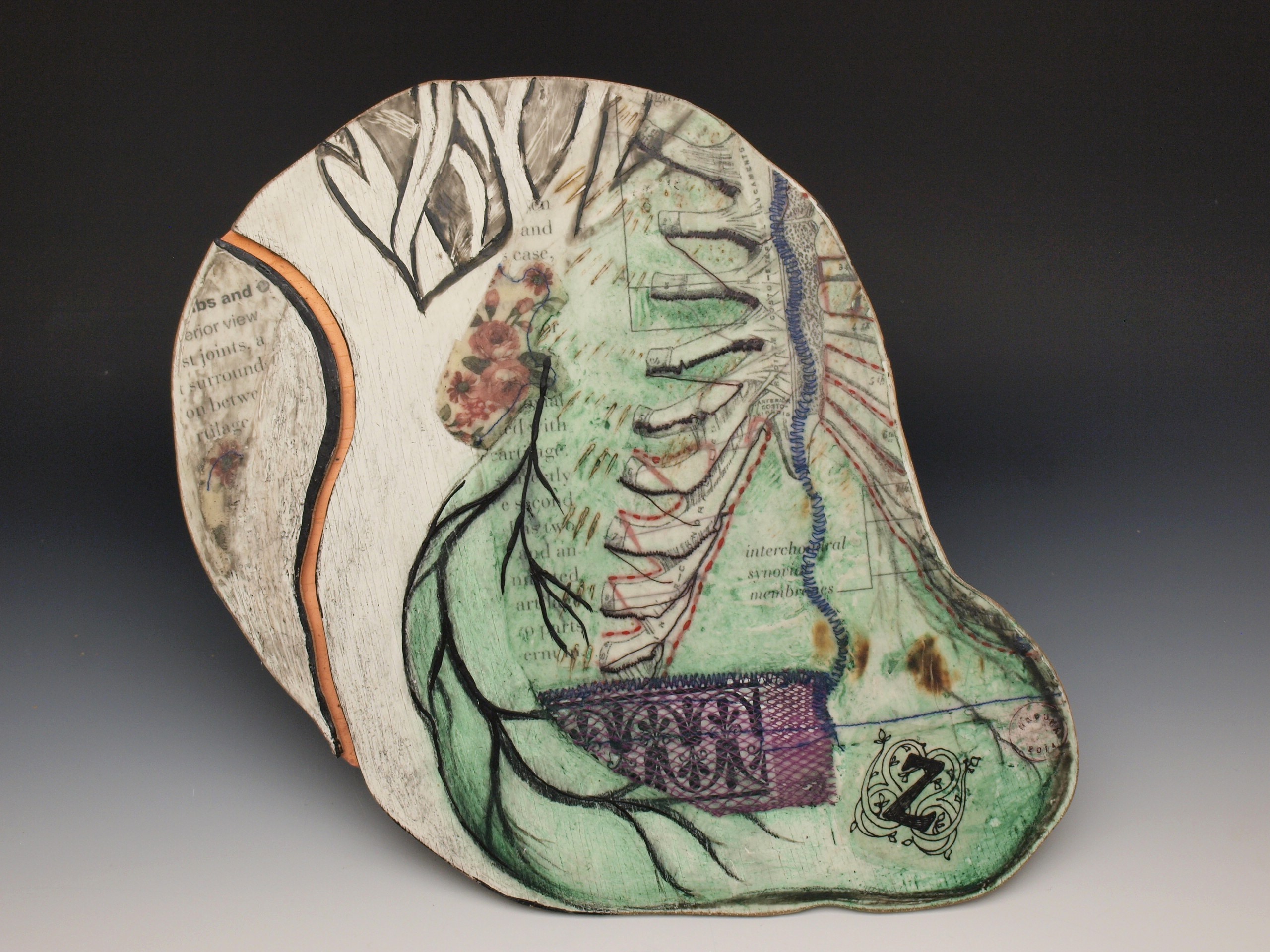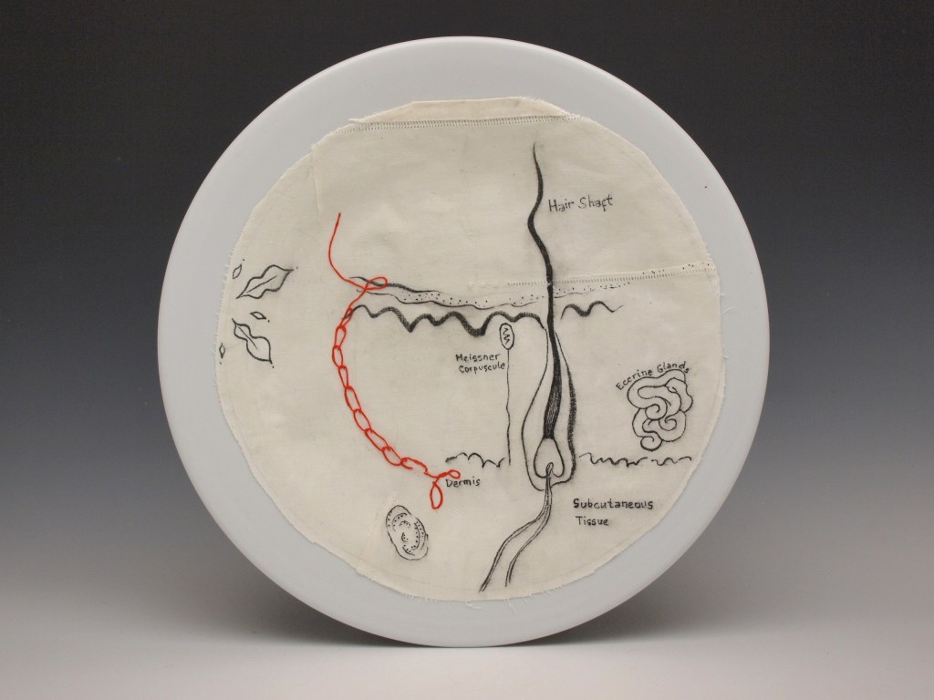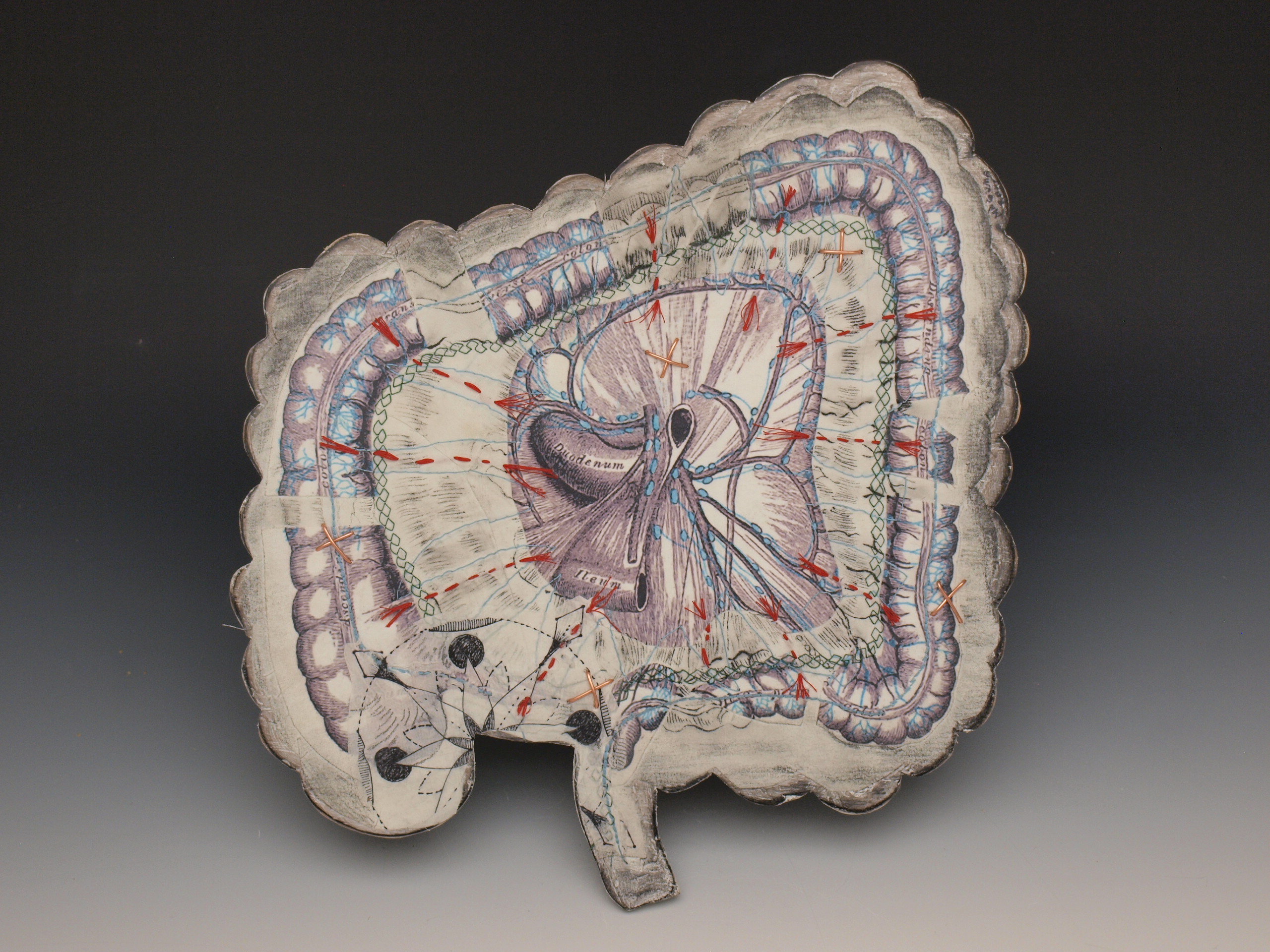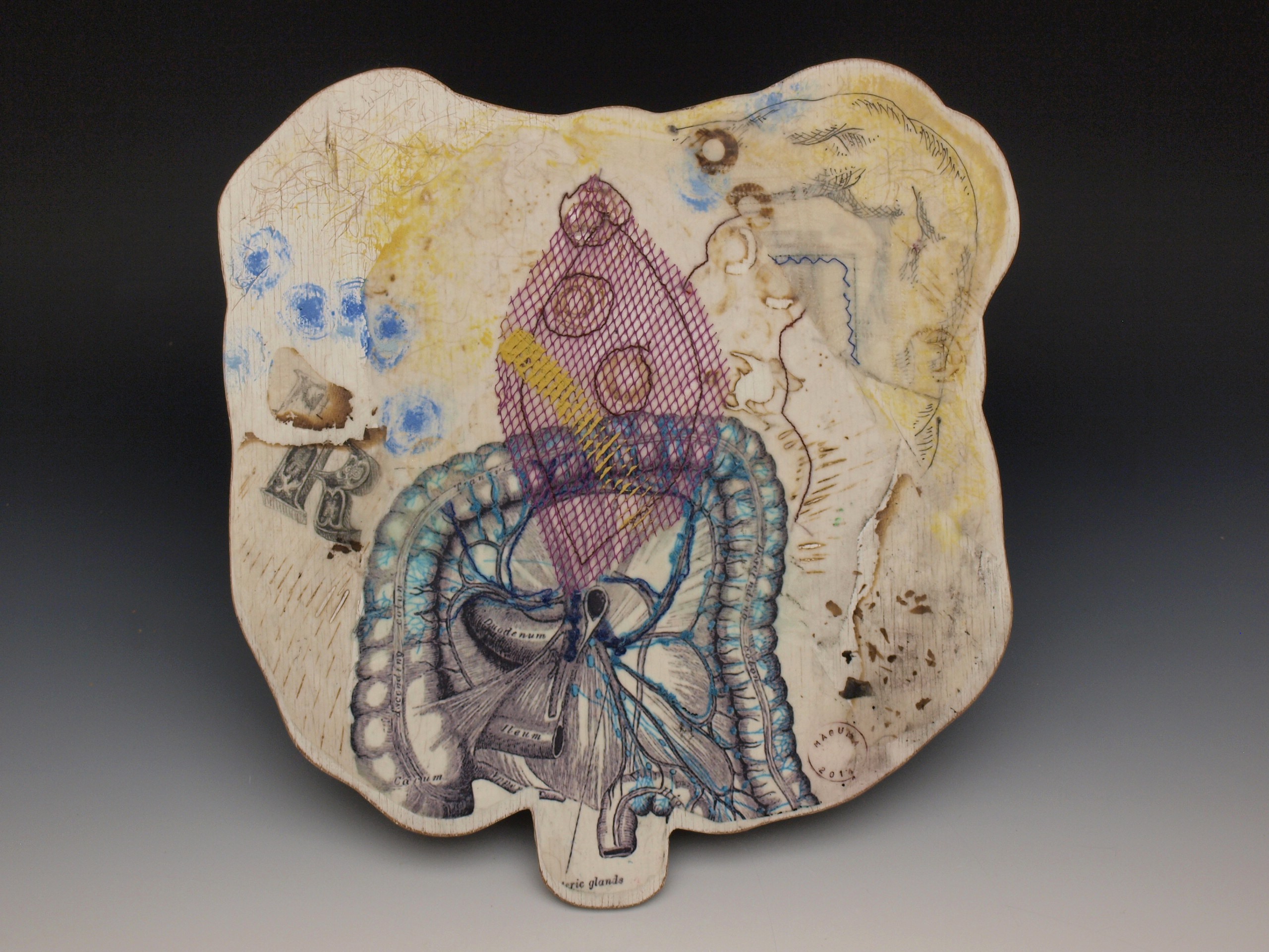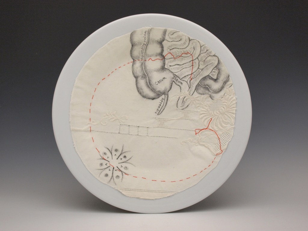 “Colon”, ink, embroidery and cotton on porcelain, 2017