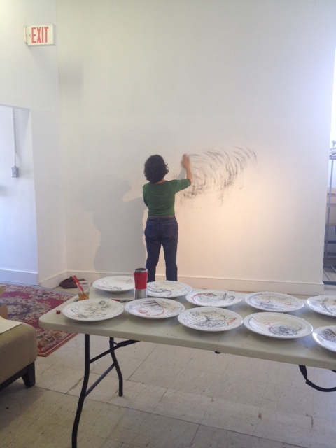 As I drew the wall with charcoal I prepared the surface that would hold the art-plates I was serving