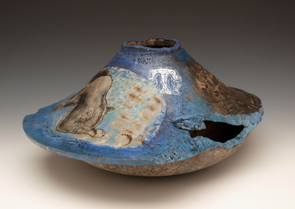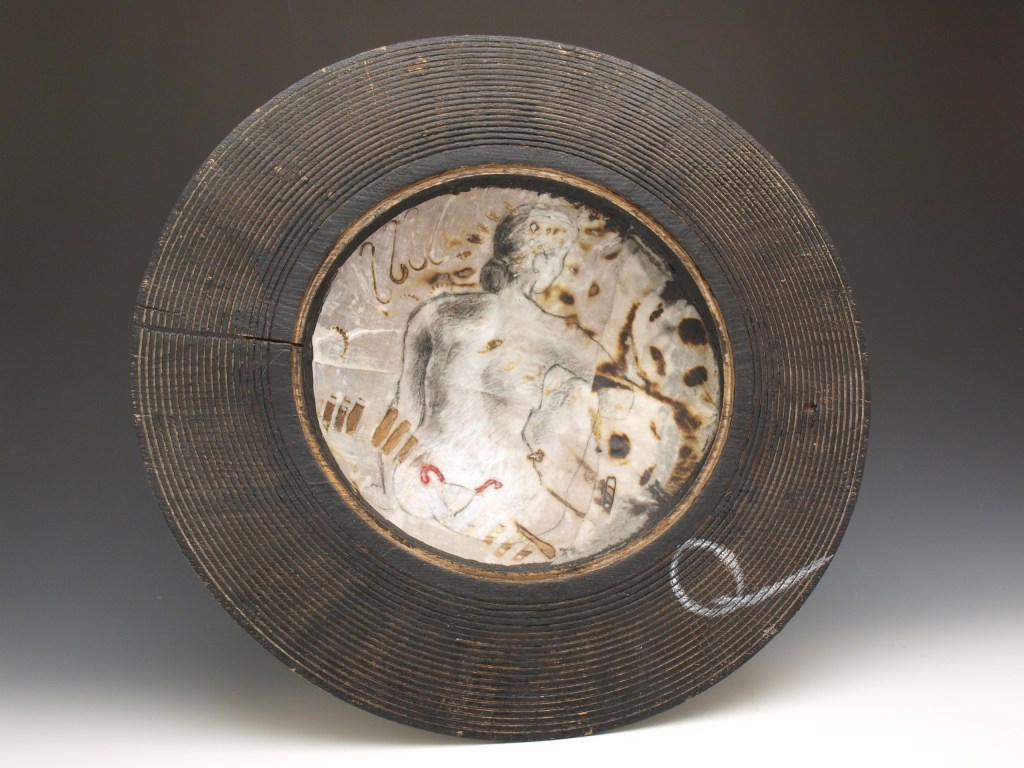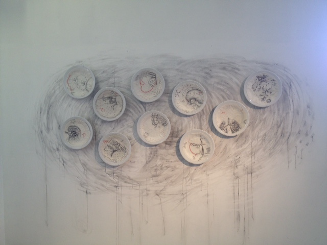 This series of work was a pretext to remember to breathe slowly and in the present, while working on drawing and embroidery mounted onto porcelain dishes. This group was shown at Carriage Studios, Almonte in 2017. The exhibition also had bronze pieces done during my MFA in Newcastle Upon Tyne, UK in 1995.